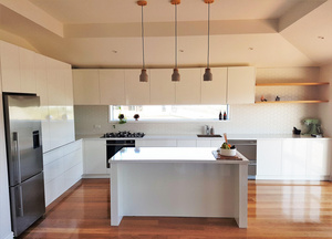 We work with a wide range of reputable local suppliers to offer a wide range of quality products to our clients that can suit a wide range of budgets. For example, when it comes to kitchen benchtops we can offer laminate benchtops, stainless steel, granite, Caesarstone, acrylic, and marble. We can come up with a kitchen design solutions to meet a wide range of design styles.