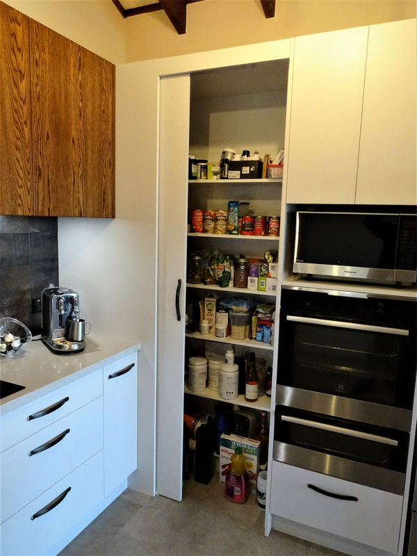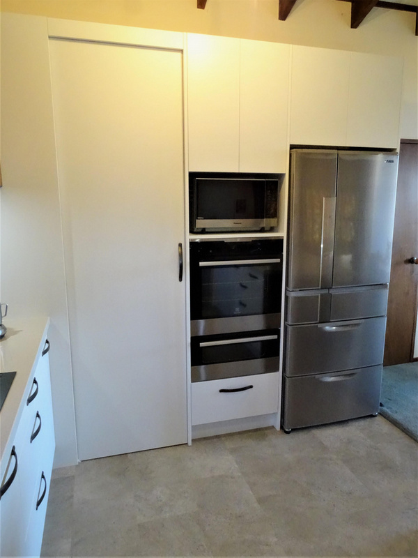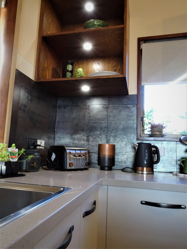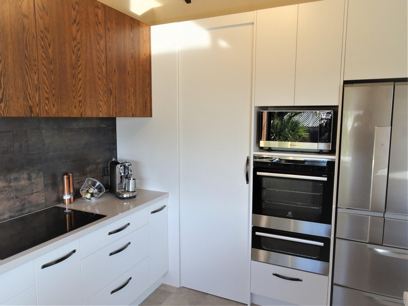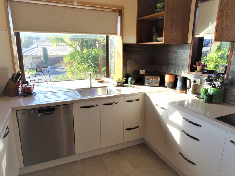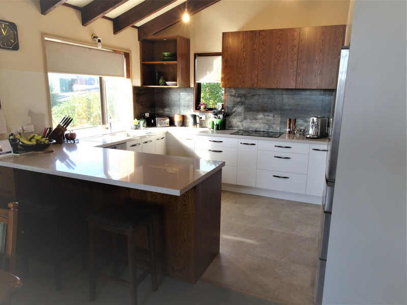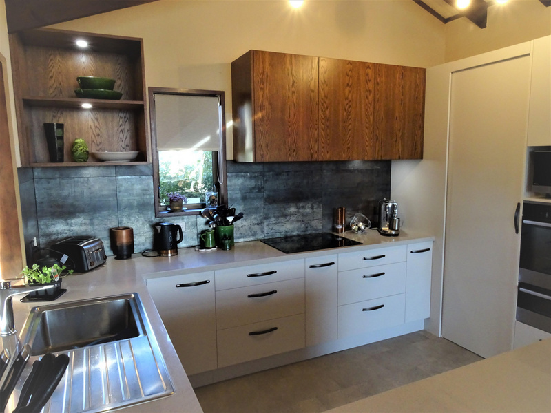 The kitchen joinery from the storage to the window and ceiling joists all ties together