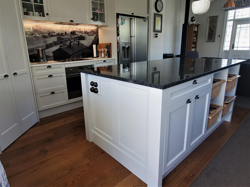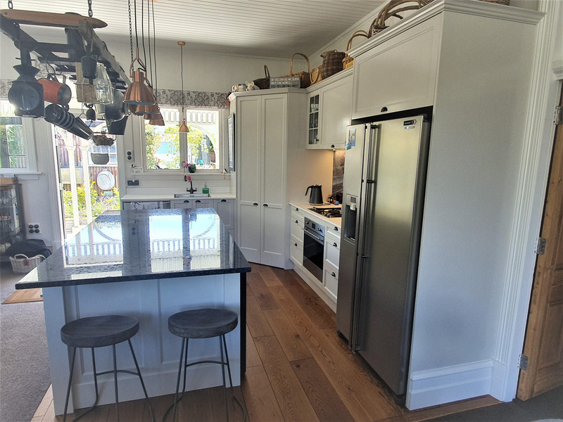 Lots of storage space in this Cape Cod style kitchen in Dunedin by Ron Kirk Joinery