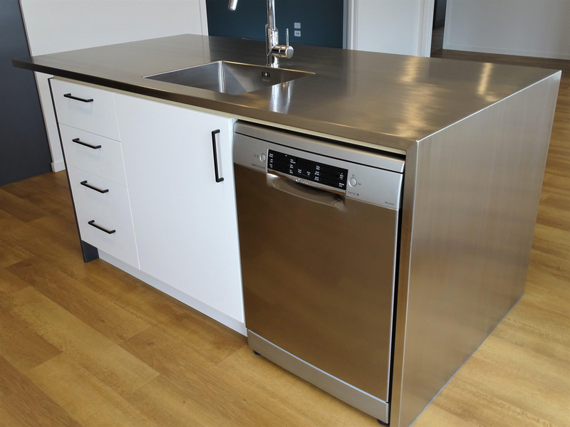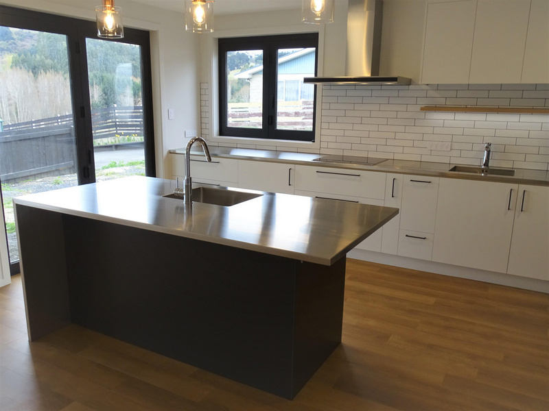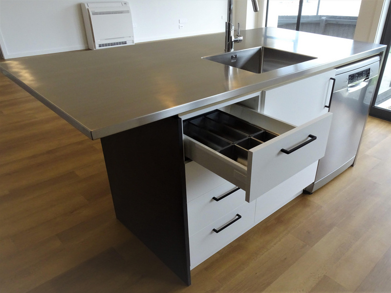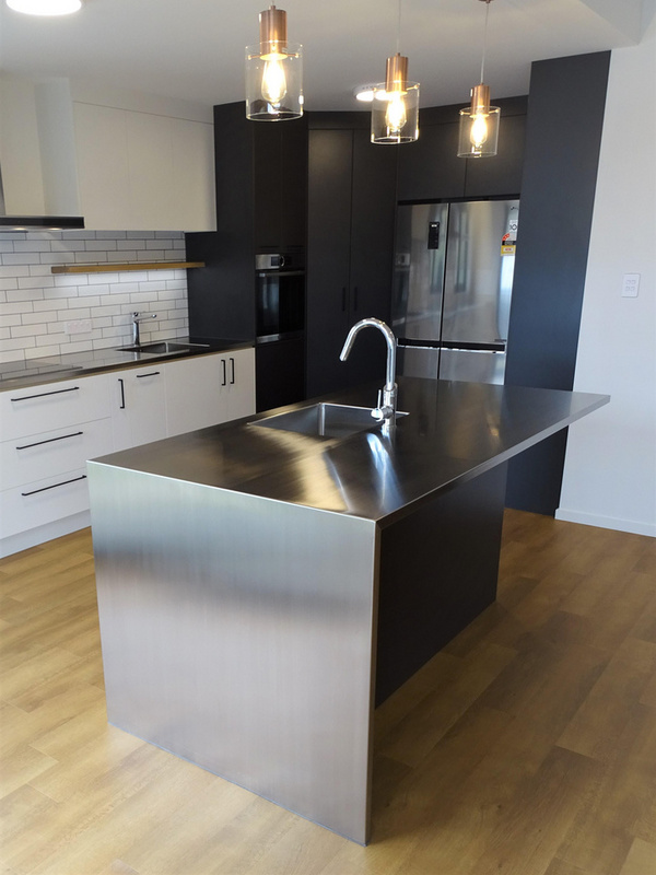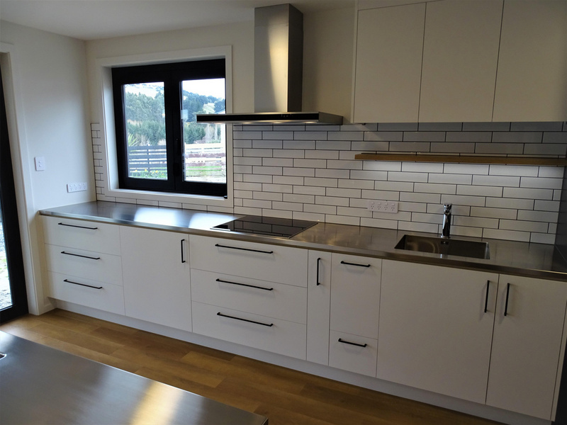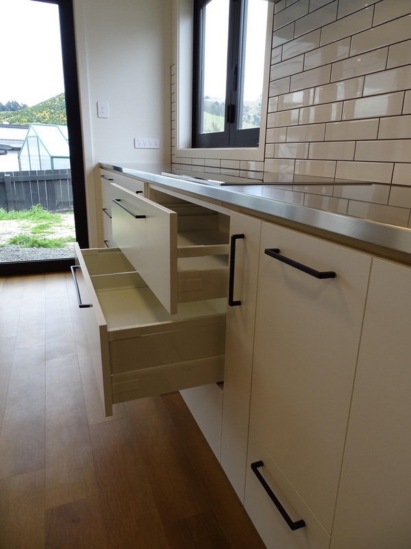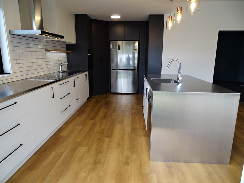 The lighting and black fittings on this kitchen cabinetry by Ron Kirk Joinery